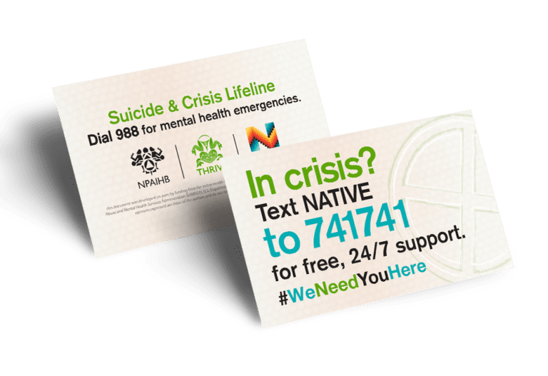 Some of the NPAIHB materials are currently “download only.” Please feel free to download and print these locally. Interested in any physical or print materials? Click HERE to complete our request form and we’ll get back to you shortly. We will have the print and ship option back up and running for more materials as soon as possible. If you have any questions, please reach out to NPAIHB staff at jcummings@npaihb.org and type “Native Health Resources” in the subject line, and we will respond as soon as we can.
